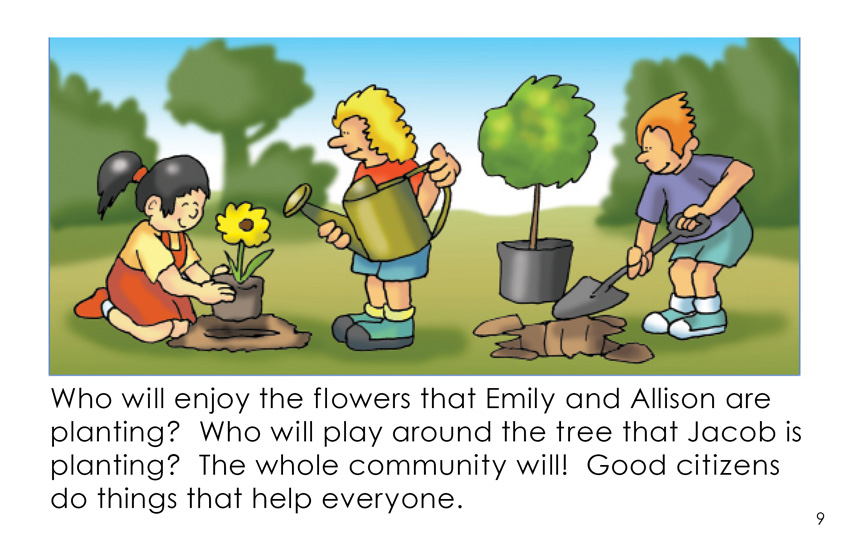 "Good Citizens" is a 12 page informational book for second grade readers. This illustrated book says that good citizens help others, obey laws, and work to make things better.