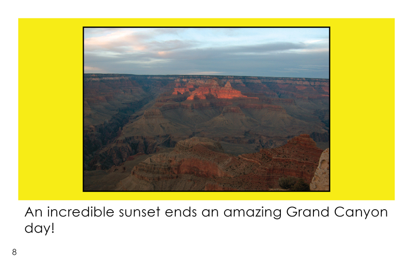 "Grand Canyon Day" is an 8-page story for first and second grade readers. The author prepares to hike a Grand Canyon trail.