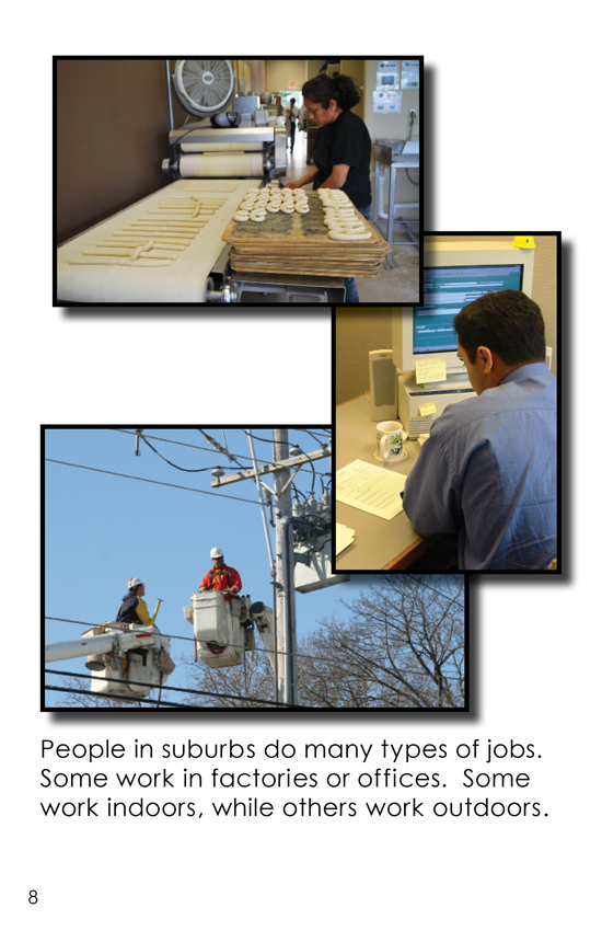 "Life in the Suburbs" is a 12 page informational book for second grade readers. This book describes the distinction between cities and suburbs using four comparative adjectives. This book uses the same word in different grammatical forms. Page 12 is a review of the book.