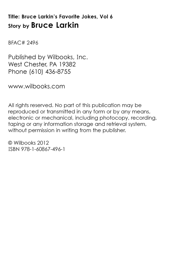 "Bruce's Favorite Jokes Volume 6" is a 12 page joke book for second and third grade readers. This illustrated joke book features second meanings, ridiculous explanations, and colloquial speech.