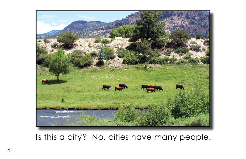 "Is This a City?" is an 8-page informational book for first grade readers. Each page features landscapes, some in cities, some not, and asks the question, "Is this a city?" The theme of the book is for the reader to identify characteristics of a city.