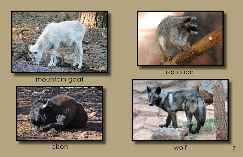 "Animals Bruce Larkin Saw at Bearizona" is a 12 page informational book for second grade readers. With colored photos and descriptive test, this book depicts a zoo-like environment of wild and domestic animals Page 12 is a review of the book.