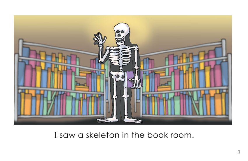 "My New School" is an 8-page story for first grade readers. It's about a little girl arriving to a new school and finding it very weird, only to learn that the weirdness is due to it being Halloween.